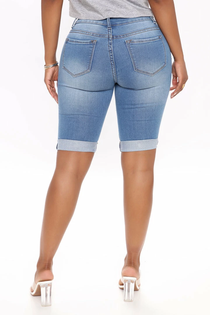 - Mid Rise Denim Bermudas