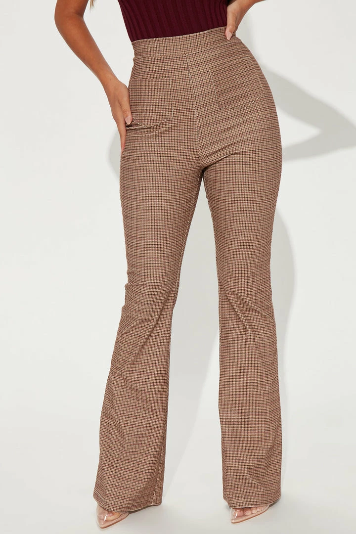 SKU: fashion-nova-6537091678332 Category: Pants Tags: All Promo, Atticket, Bottoms, Color:Brown/combo, Print:Plaid, REGPRICE, Style:Flare Leg, WOMENS