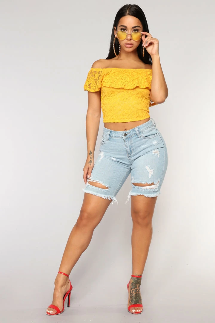 SKU: fashion-nova-91362983953 Category: Shorts Tags: Bottoms, Color:Light Blue Wash, Detail:Distressed, Detail:Ripped, Distressed, Julybogo, Mid Rise 8", Wash:Light Wash